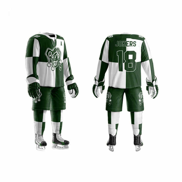 เครื่องแบบทีมฮ็อกกี้น้ำแข็งสำหรับผู้ใหญ่ชุดยูนิฟอร์มฮ็อกกี้น้ำแข็งพิมพ์โลโก้ตามสั่ง