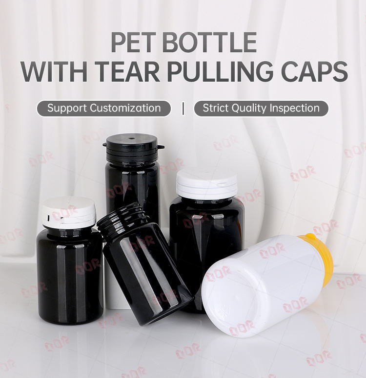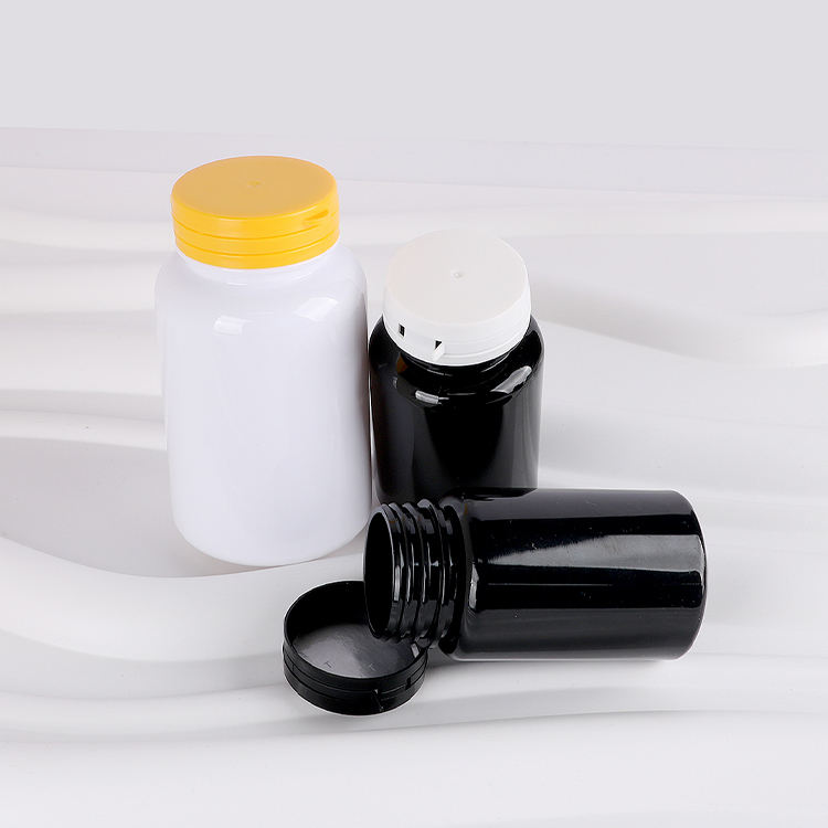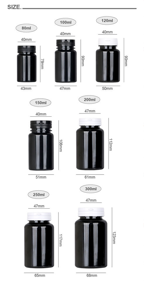 แคปซูลอาหารเสริมวิตามินสำหรับสัตว์เลี้ยงขนาด200มล. ทรงแคปซูลสำหรับรับประทานอาหารปรับแต่งขวดพลาสติกสีดำ