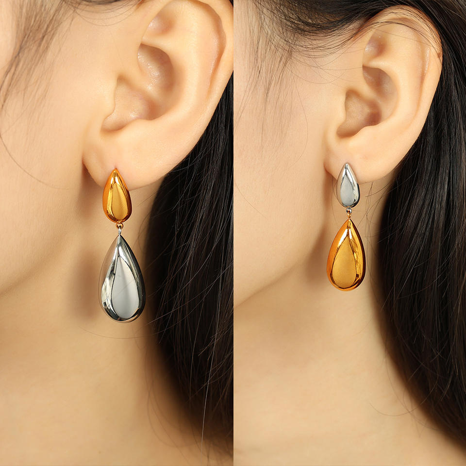 ต่างหูหยดน้ำสแตนเลสสตีลสีทองสีเงินทูโทนเครื่องประดับแฟชั่นปาร์ตี้ EH556