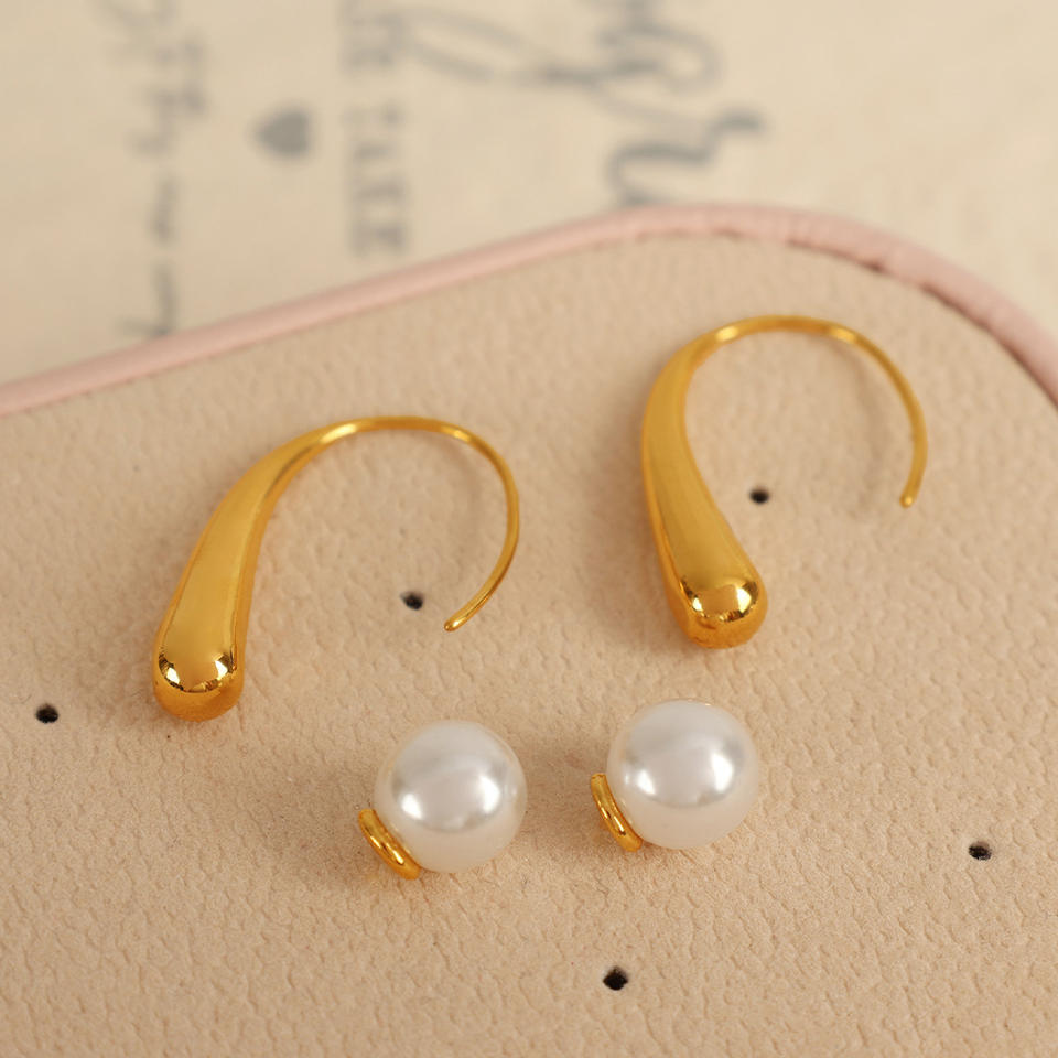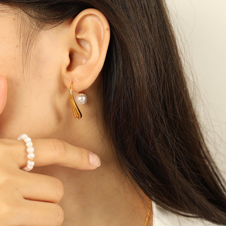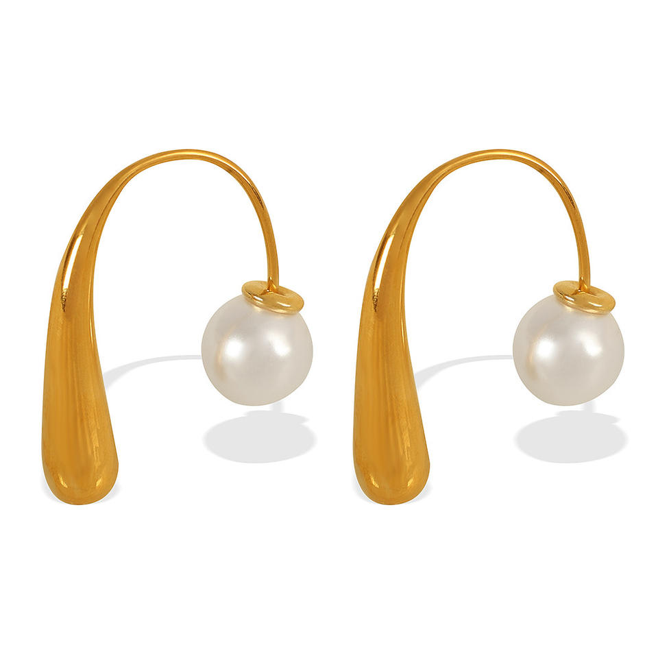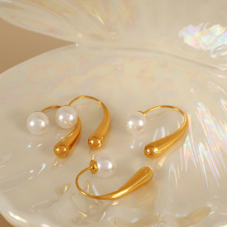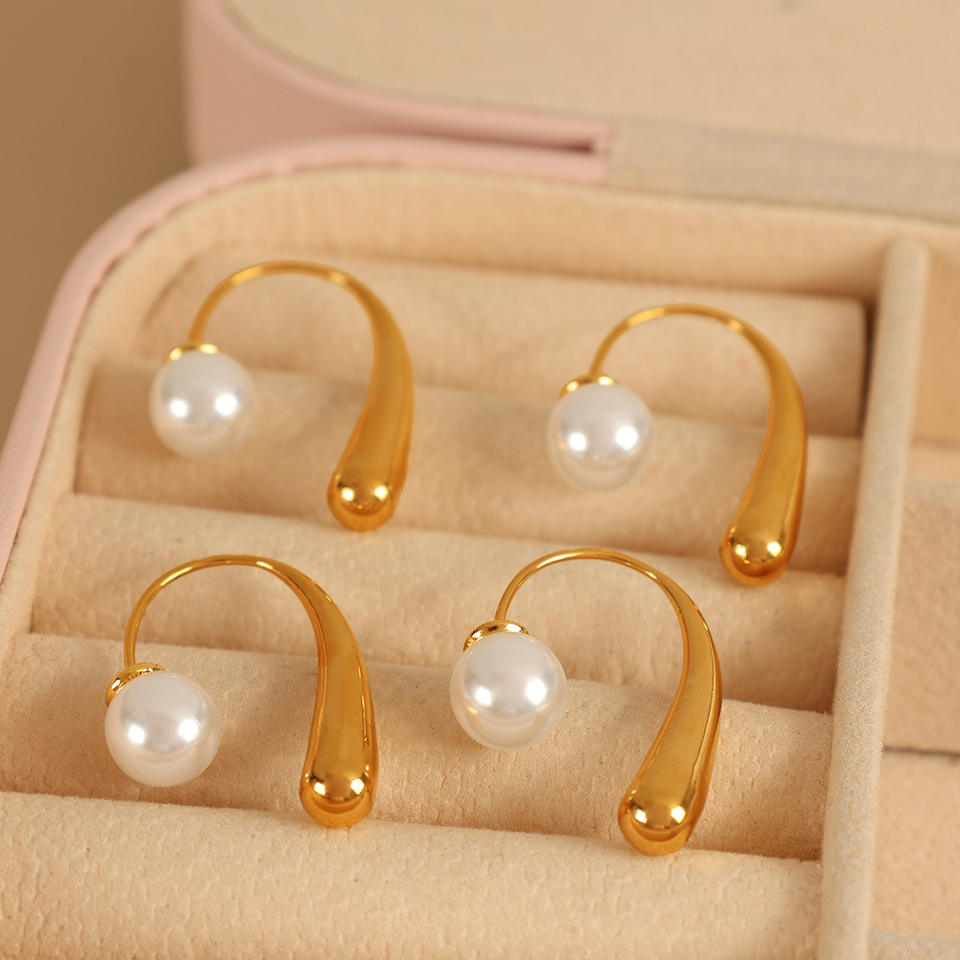 ต่างหูทรงหยดน้ำชุบทอง 18k ประดับมุกปลอมรูปตัว U สำหรับงานปาร์ตี้ เครื่องประดับแฟชั่น