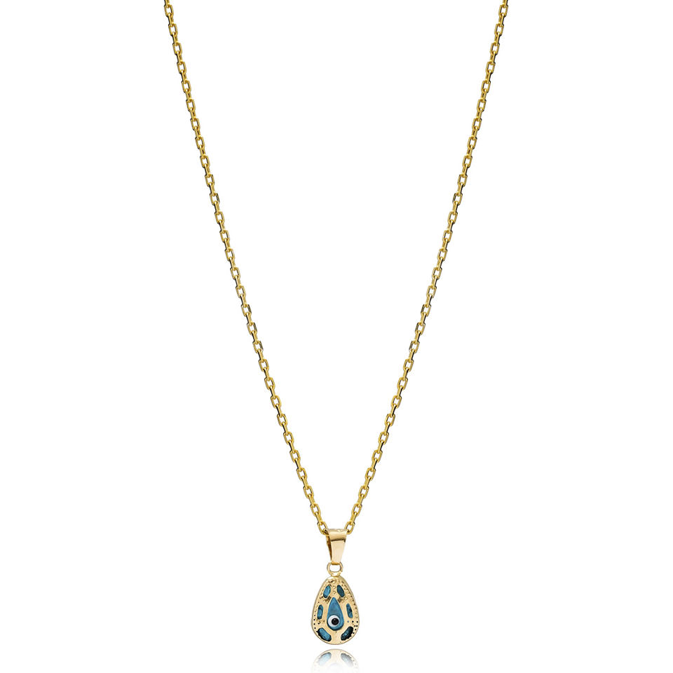 น้ำตารูปร่างออกแบบ EvilEye เสน่ห์สร้อยคอขายส่งตุรกี925เครื่องประดับเงินสเตอร์ลิง