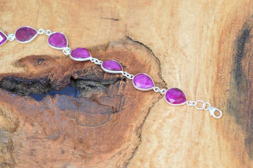 ชื่อผลิตภัณฑ์:สร้อยข้อมือเงินพลอยทับทิมสีชมพูธรรมชาติ