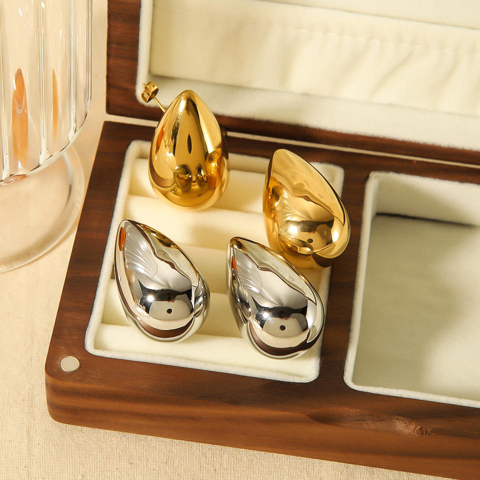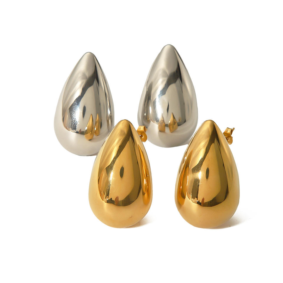 ต่างหูสแตนเลสรูปหยดน้ำ ชุบทอง 18K เครื่องประดับแฟชั่นสำหรับผู้หญิง สวมใส่ได้ทุกวันอย่างสง่างาม