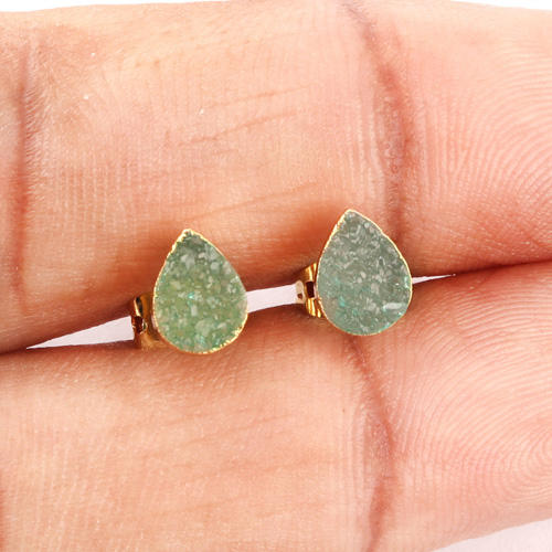 ต่างหูเม็ดกลมหยดน้ำตาแบบธรรมชาติประกายน้ำตาลดรูซี่ตุ้มหูทองเหลืองชุบทองด้วยไฟฟ้ากระดุมคู่เล็กทำด้วยมือ
