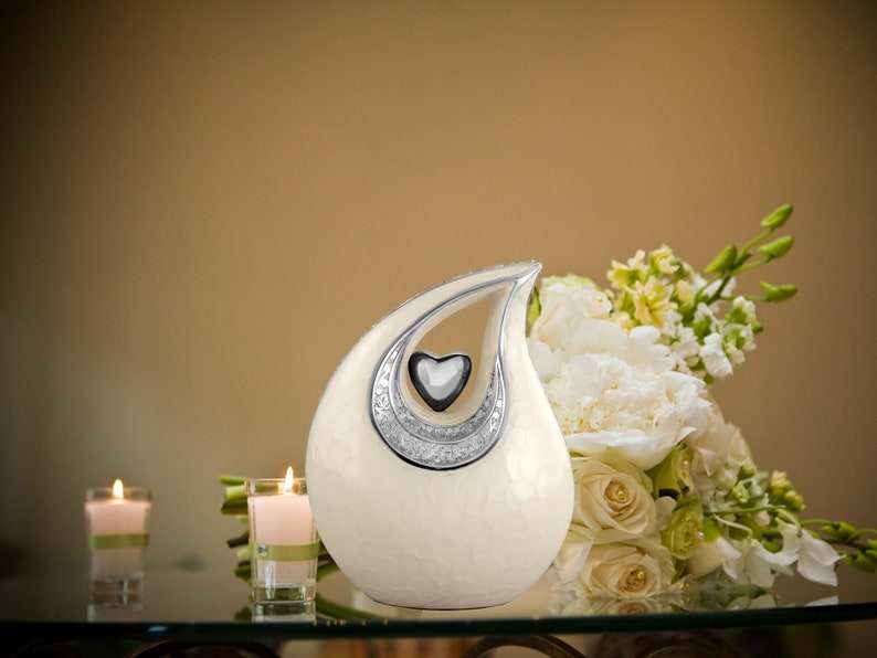 หยดน้ำตาสีเงินสลักลายมุกสีขาวโลหะหยดน้ำตาสำหรับขี้เถ้าของมนุษย์เป็นของ210Lbs สำหรับผู้ใหญ่