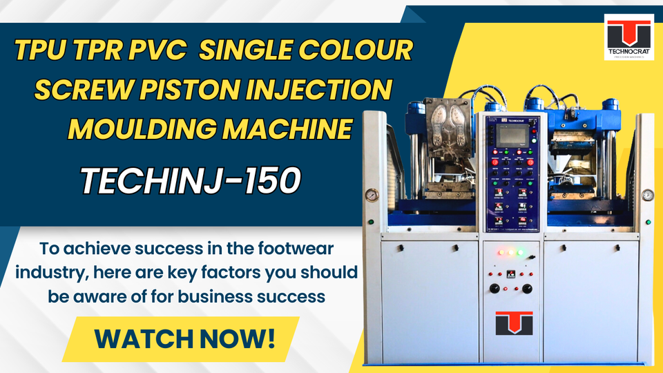 เครื่องฉีดพลาสติกสำหรับทำพื้นรองเท้า Technocrat Mouldings รุ่นใหม่ แรงกด 150 ตัน พร้อมมอเตอร์และลูกปืน