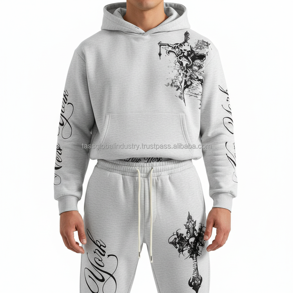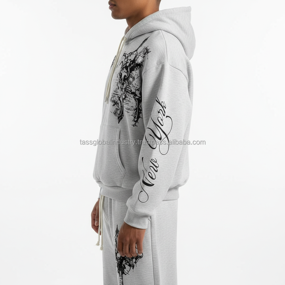ชุดเสื้อฮู้ดและกางเกงวอร์มสไตล์เทคแวร์ – ชุดผ้าฟลีซลายย้อมสีแบบแอซิดวอช