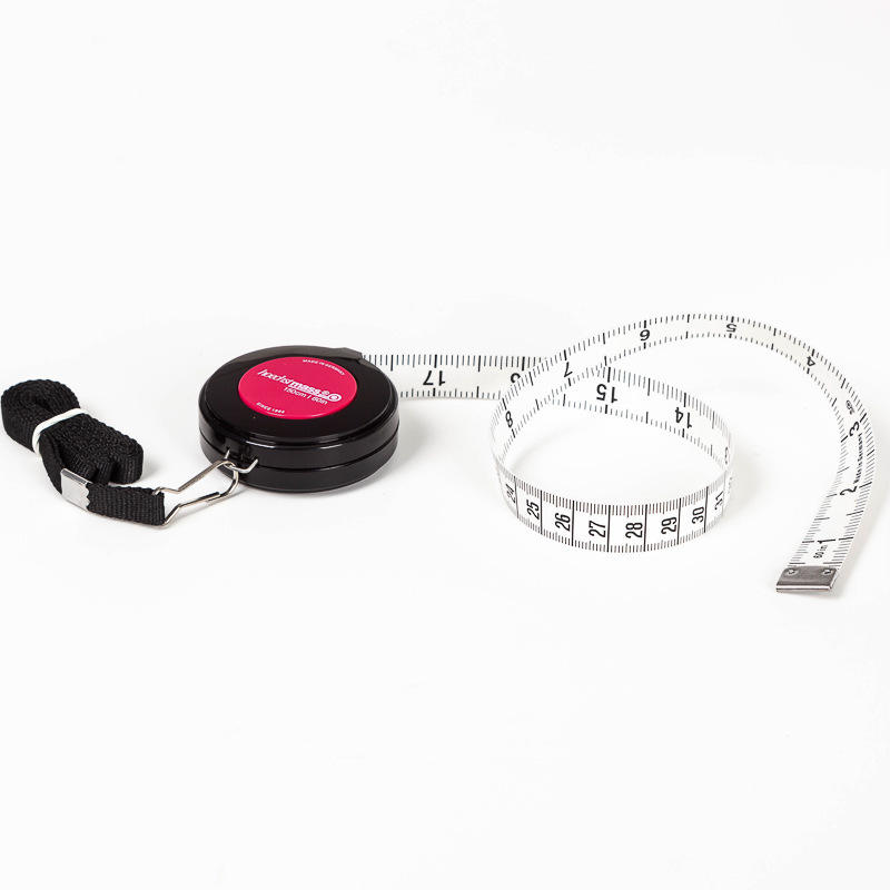 เทปวัดตัวแบบม้วนกลับอัตโนมัติ Techman & Co ขนาด 3 เมตร แบบเมตริก พร้อมใบมีดพลาสติกแบบล็อคอัตโนมัติ และปลายแบบตะขอ สำหรับวัดรอบเอวเสื้อผ้า