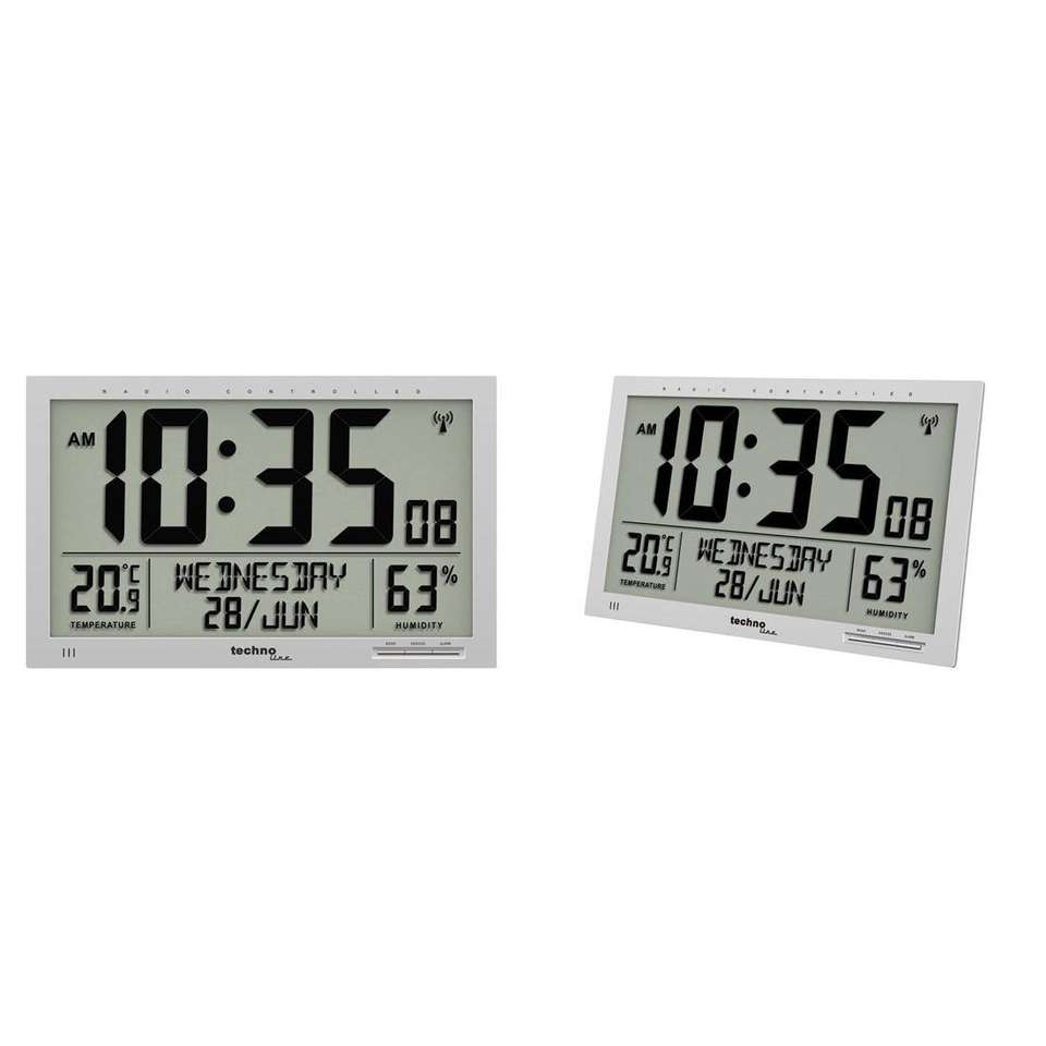 นาฬิกาแขวนผนังดิจิตอล Techno Line WS 8013 รุ่นโมเดิร์น พลาสติก ควบคุมด้วยคลื่นวิทยุ ขนาด 369 มม. x 229 มม. x 24 มม. สีเงิน จอแสดงผลขนาดใหญ่ (940910273766)