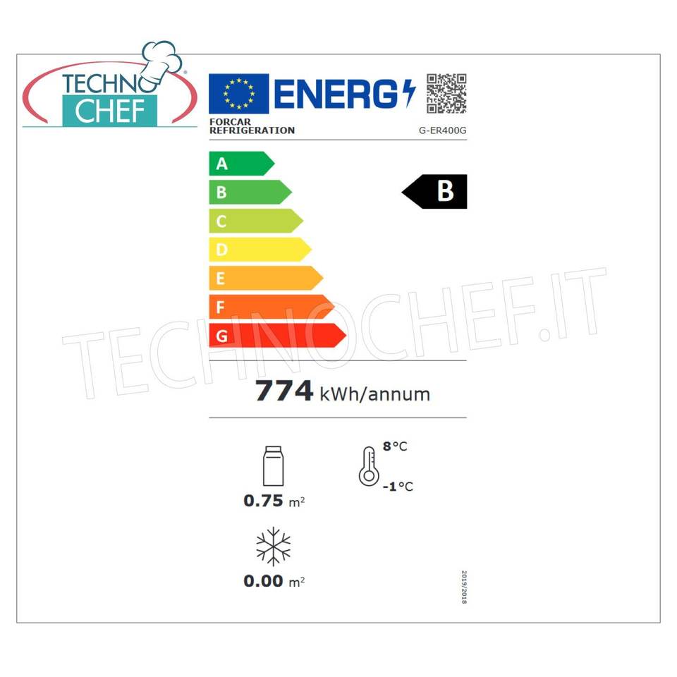 ตู้แช่เครื่องดื่ม Technochef G-ER400G แบบ 1 ประตู สแตนเลสสตีล ไฟฟ้า อุณหภูมิ +2/+8 องศาเซลเซียส 350 ลิตร คลาส บี สำหรับใช้ในครัวเรือน