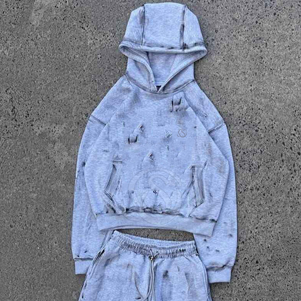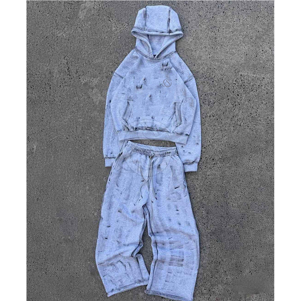 ชุดเซ็ตฮู้ดดี้และกางเกงวอร์มผ้าเฟรนช์เทอร์รี่ทรงโอเวอร์ไซส์ สไตล์เทคแวร์ สำหรับฤดูหนาว สีพื้น เรียบง่าย แบบสั่งทำพิเศษ ขายส่ง