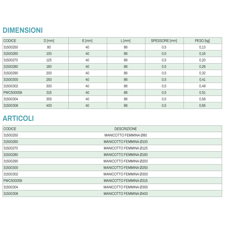 หมายเลขรุ่น:tecnosystemi-manicotto-femmina