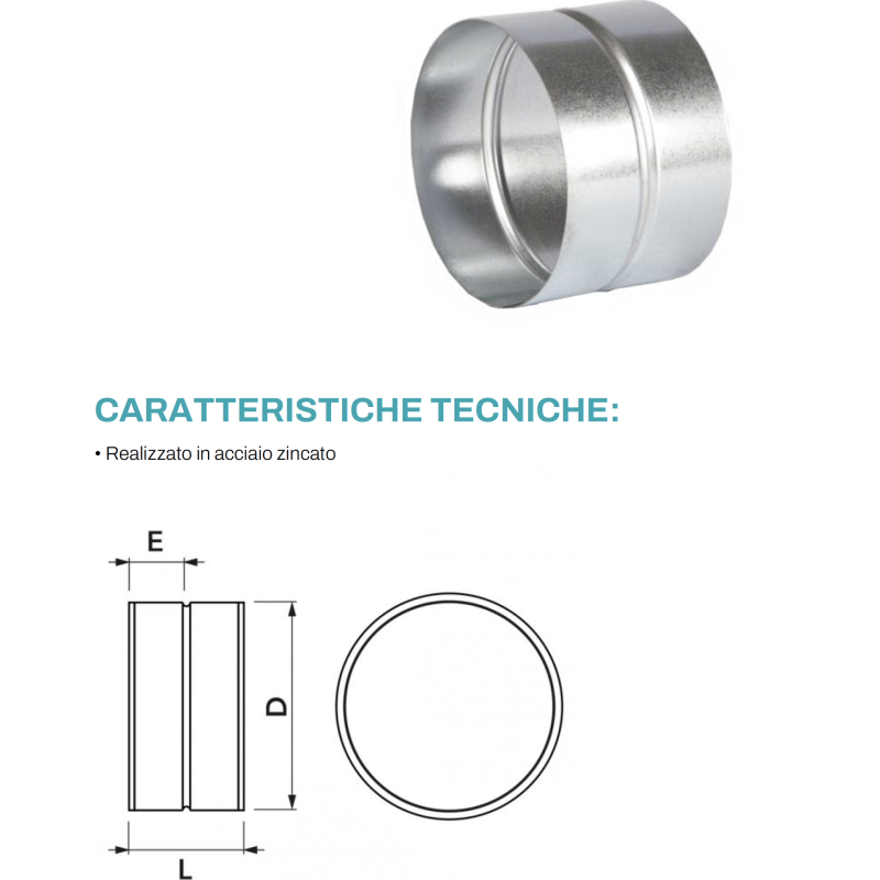 ปลอกเหล็กชุบสังกะสี Tecnosystemi สำหรับระบบ HVAC แบบท่อกลม ติดตั้งง่าย