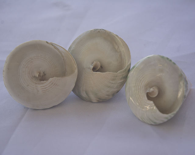Tectus triseialis trocas เครื่องประดับเปลือกหอยขัดเงาสีขาวและสีเขียวขนาด7-9ซม. เปลือกหอยเครื่องประดับเปลือกด้านบน