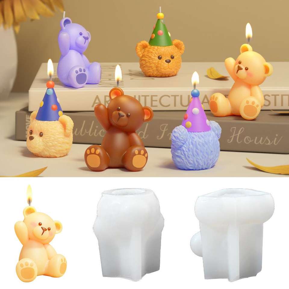 Teddy Waving Bear Candle Chocolate Mold Cake Baking Tools Sitting Bear Candle Silicone Mold