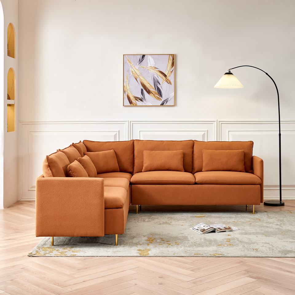 กรอบไม้เท็ดดี้ชุดเตียงโซฟาหลายที่นั่งแบบทันสมัยผ้าหุ้มหลายคนห้องนั่งเล่นวิลล่าสีส้ม