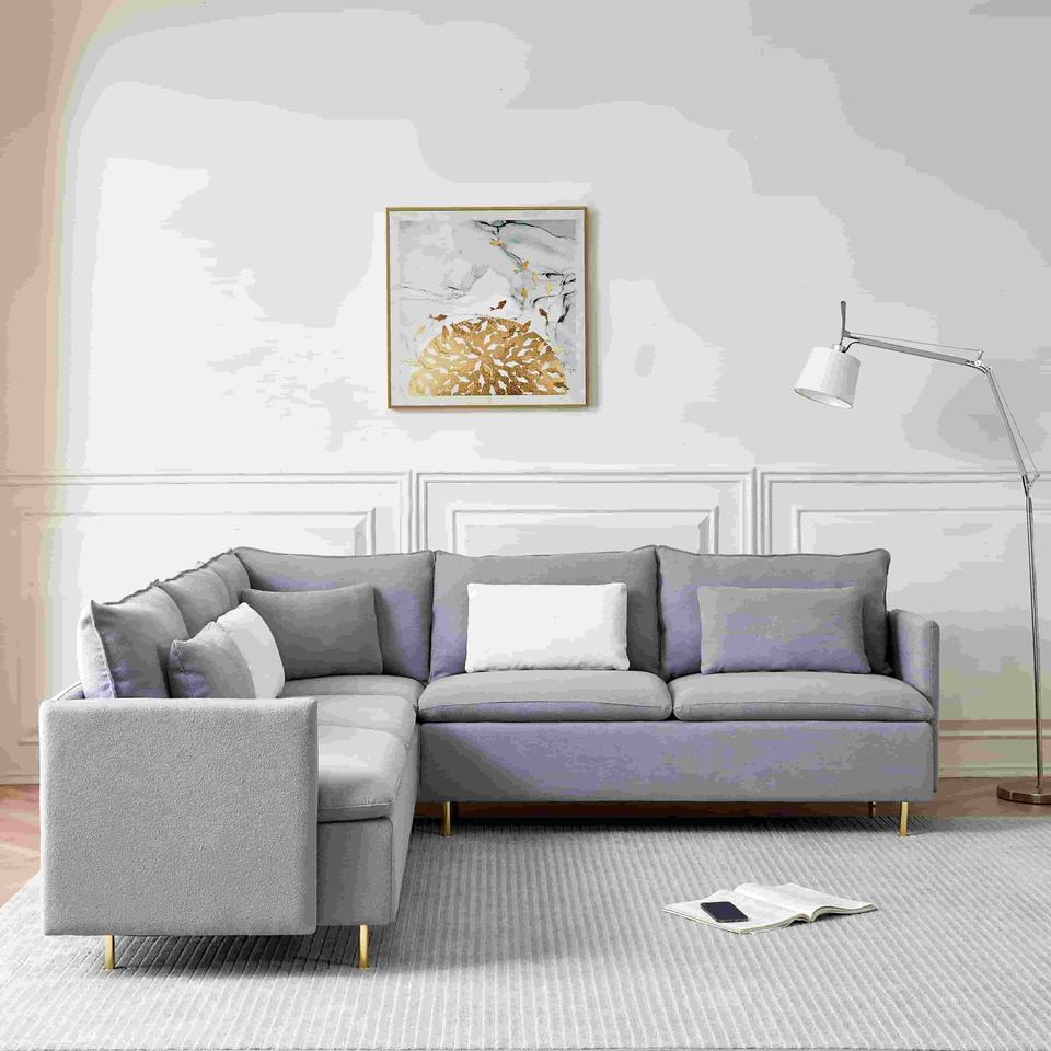 โซฟาโมเดิร์นกรอบไม้เท็ดดี้หุ้มเบาะโซฟาแบบแบ่งส่วนสำหรับหลายๆคนห้องนั่งเล่นอพาร์ทเมนต์สีเทา
