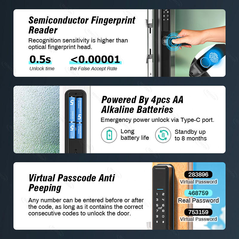 วิธีปลดล็อค:แอป + ลายนิ้วมือ + รหัสผ่าน + การ์ด + คีย์