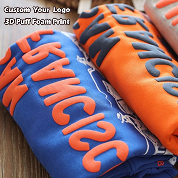 เสื้อยืดผ้าฝ้ายโพลีเอสเตอร์100% แบบธรรมดาเสื้อยืดพิมพ์ลายพัฟโฟม3D แบบกำหนดเอง