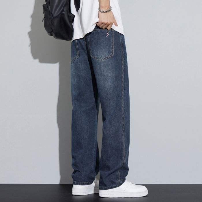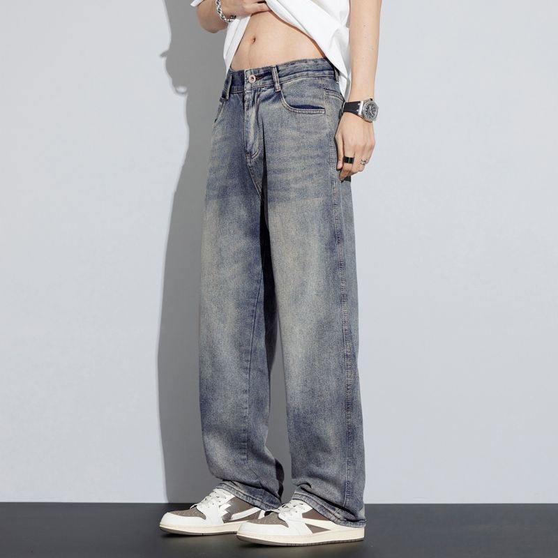 กางเกงขาตรงขากว้างแบบหลวมกางเกงลำลองวัยรุ่นชาย