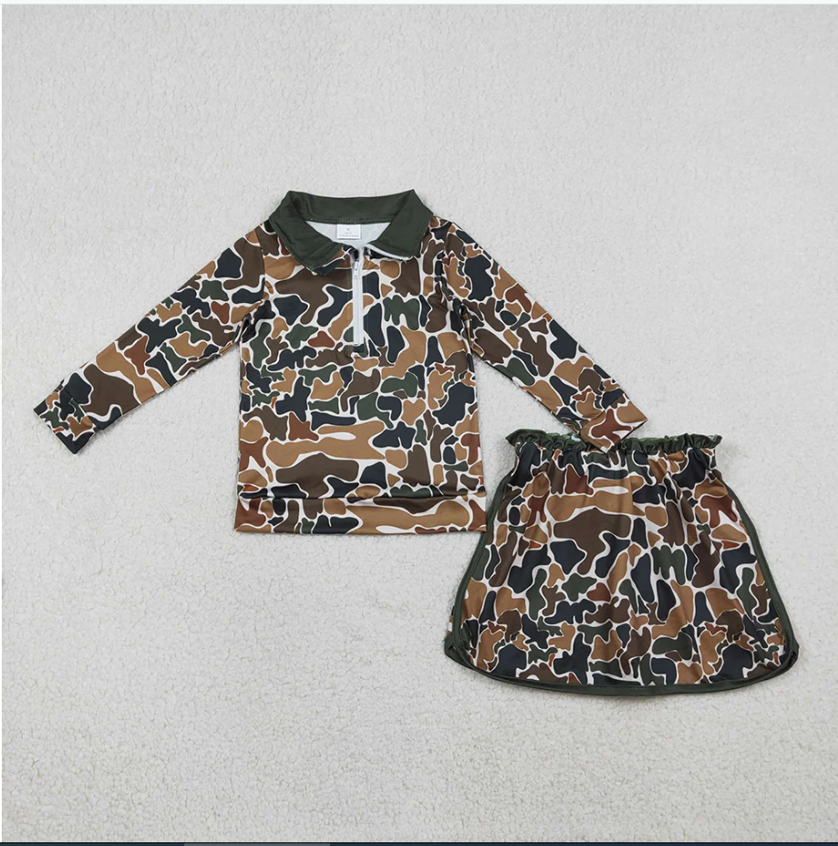 ชุดเสื้อผ้าเด็กผู้หญิง GLD1547 สีน้ำตาลลายพราง เสื้อซิป กระโปรง กางเกงขาสั้น ชุดเสื้อผ้าเด็กผู้หญิง