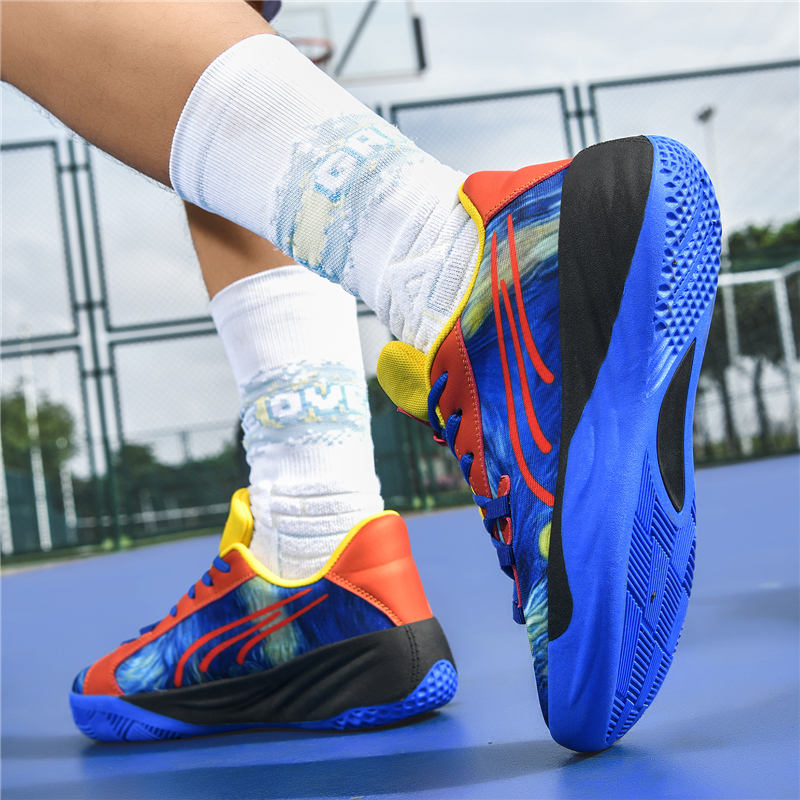 Teenagers High-Quality Rubber Outsole Breathable Basketball Shoes Art Print Campus Sports Training Shoes