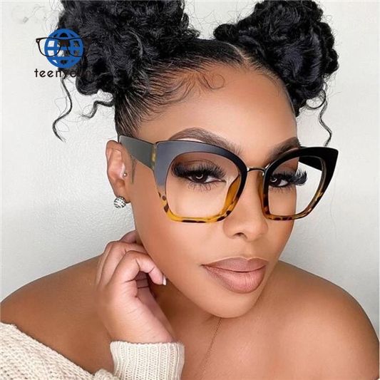 Teenyoun แว่นตาออพติคอลใบใหญ่สำหรับผู้หญิงแว่นตาแฟชั่นแก้วกันแสงสีฟ้าแว่นตาคอมพิวเตอร์ออกแบบโลโก้ได้ตามต้องการ