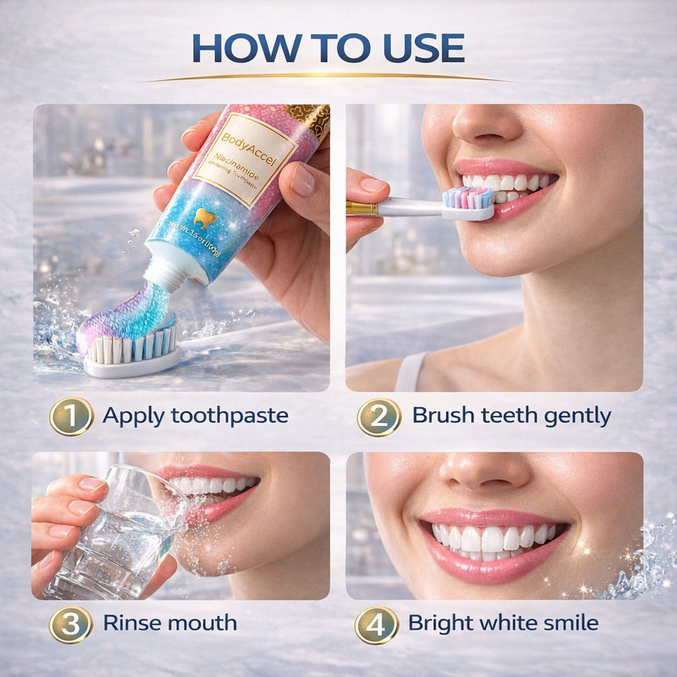 เจลฟอกสีฟัน ยาสีฟันสูตรไนอาซินาไมด์ ขจัดคราบกาแฟ ชา ควันบุหรี่ ลมหายใจสดชื่น ปกป้องเคลือบฟัน 100 กรัม