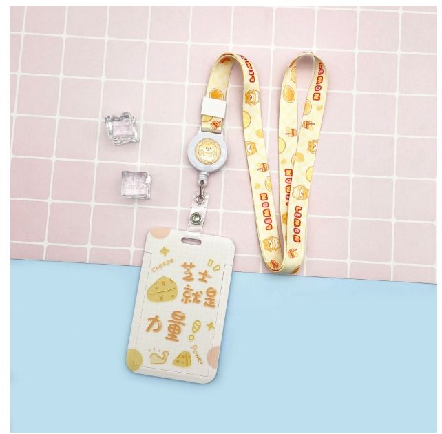 ที่ใส่บัตรประชาชนแบบยืดหดได้พร้อมสายคล้องไหล่พิมพ์ลายดอกไม้มีที่หนีบบัตรประชาชนแบบสไลด์คลิปสำหรับไปโรงเรียน