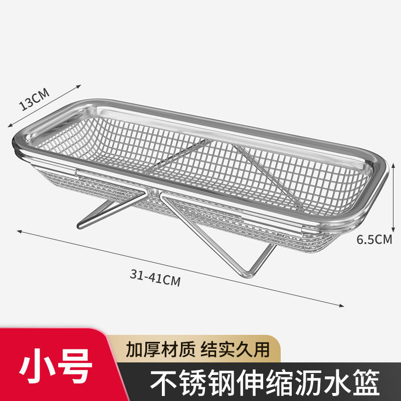 ตะกร้ากรองสแตนเลสแบบยืดหดได้ทรงสี่เหลี่ยมทันสมัยพร้อมขาตั้งสำหรับอ่างล้างจานและอ่างล้างผัก