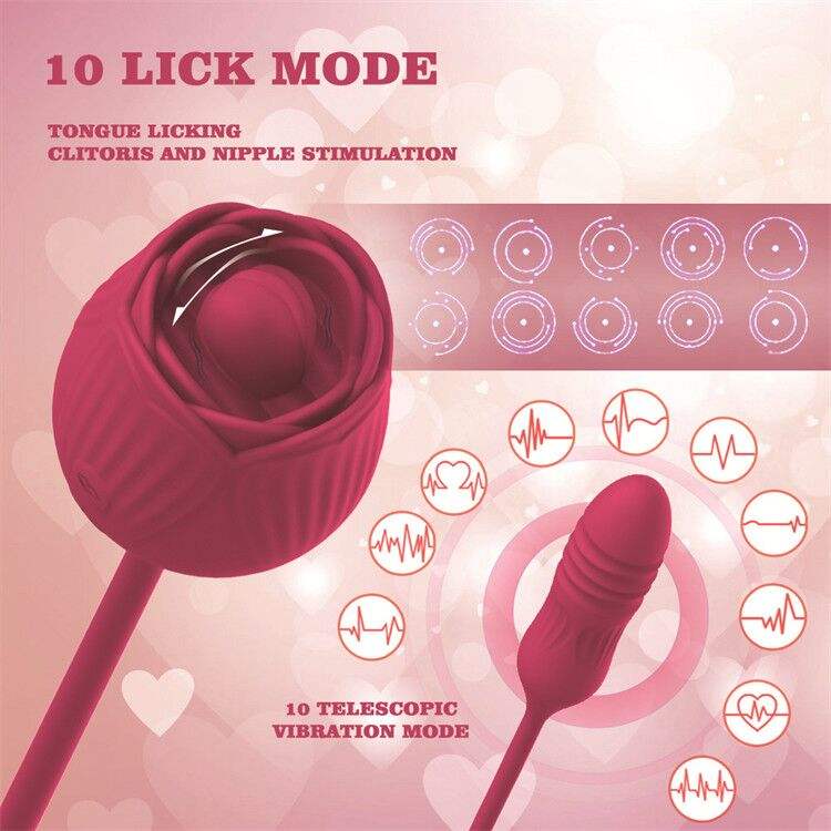 Telescoping ไวเบรเตอร์สำหรับผู้หญิงและผู้ใหญ่เครื่องสั่นลิ้นรูปกุหลาบกันน้ำสำหรับผู้หญิงหรือผู้ใหญ่