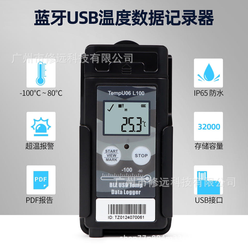 รายงาน PDF ความจุ32000กันน้ำได้มี L100 TempU06อุปกรณ์บันทึกอุณหภูมิ USB แบบ100C กับ IP65 80C