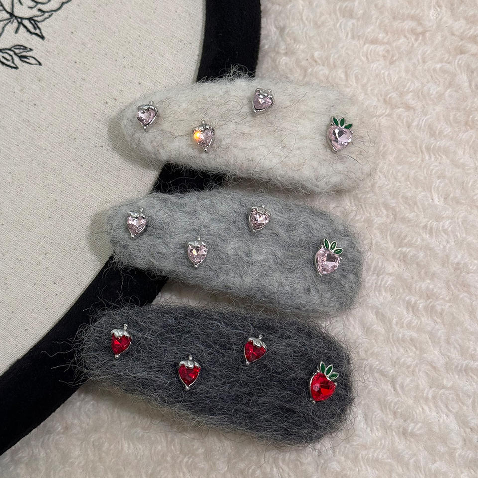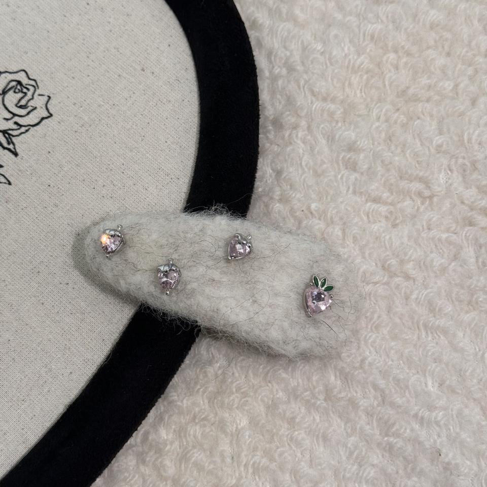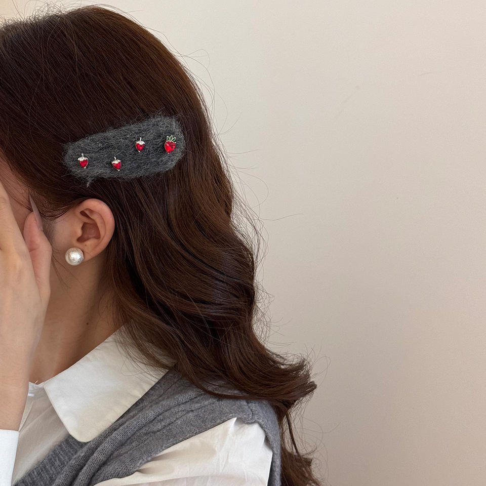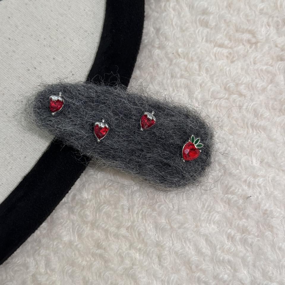 กิ๊บติดผมรูปสตรอว์เบอร์รี่สีชมพูสำหรับสาวหวาน วัสดุโลหะผสมและผ้า ขนาด 7 ซม. เหมาะสำหรับงานปาร์ตี้