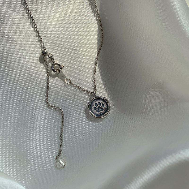 อารมณ์ความรู้สึกความรู้สึกลูกแมวน่ารักรอยเท้าอุ้งเท้าสัตว์สร้อยคอสแตนเลสโซ่กระดูกไหปลาร้าผู้หญิงเรียบง่ายใหม่อเนกประสงค์