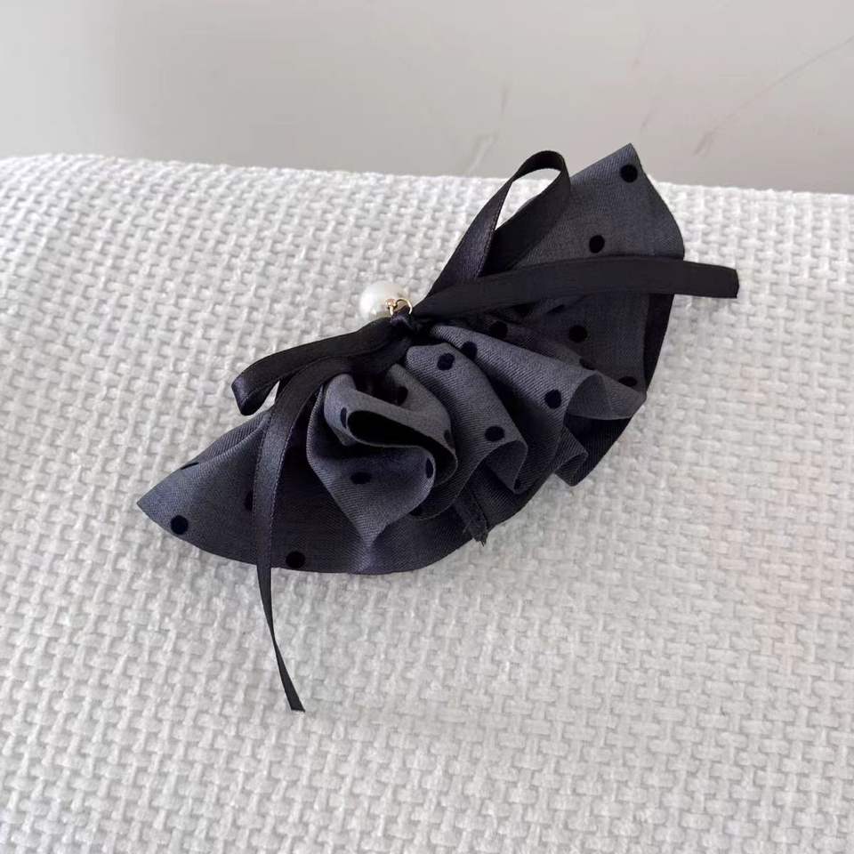Temperament Polka Dot Skirt Bowknot Hair Clip Women's Elegant Half Tie Spring Clip Hair Accessories