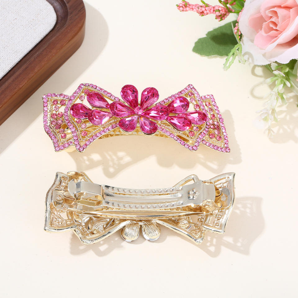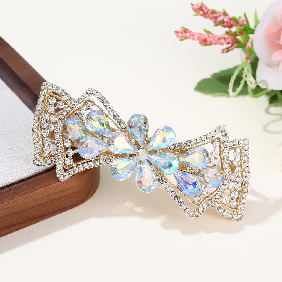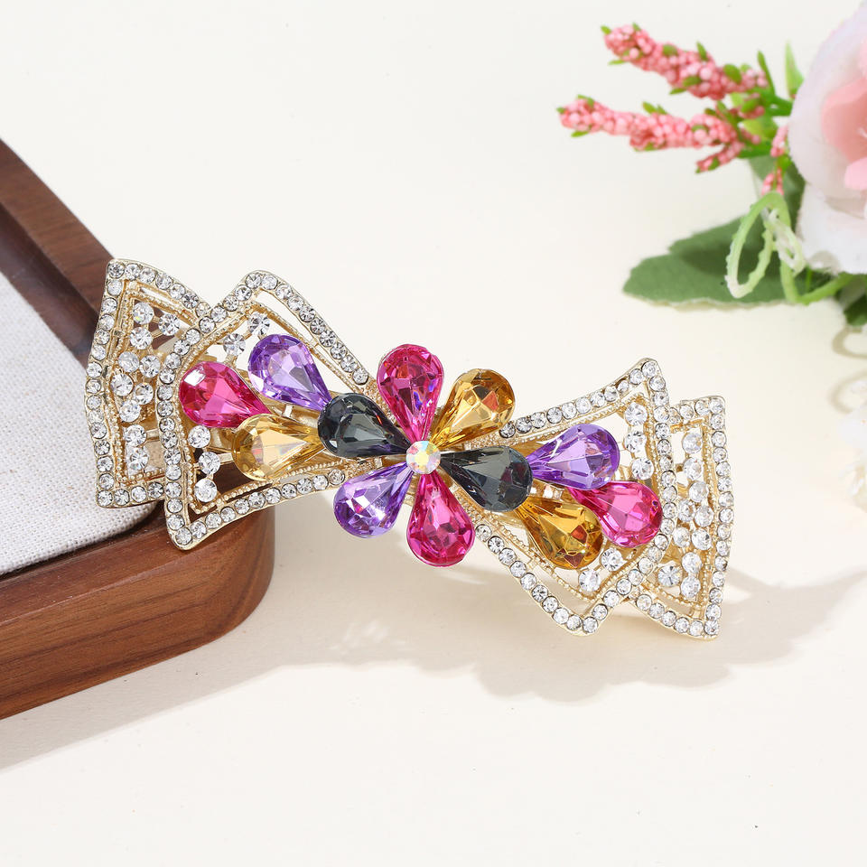 กิ๊บติดผมคริสตัลรูปดอกไม้ฤดูใบไม้ผลิประดับด้วยพลอยหลากสีสำหรับผู้หญิง