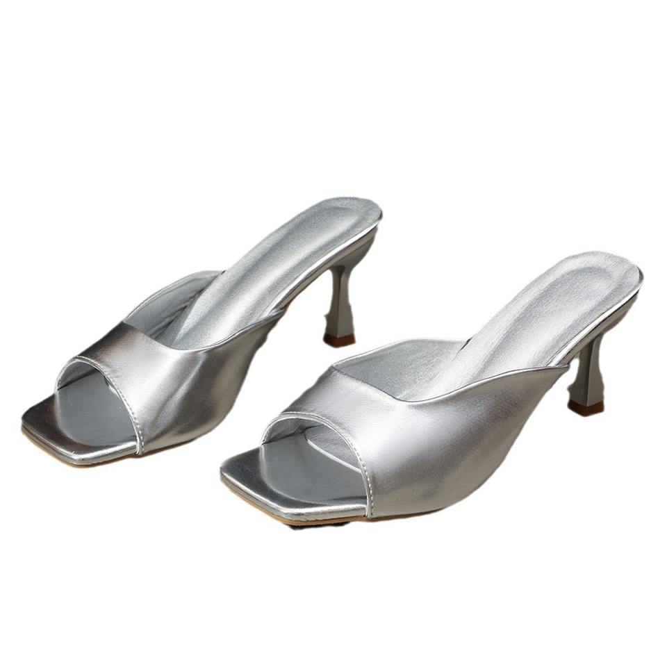 รองเท้าส้นสูงทรงเหลี่ยม สไตล์ยุโรปอเมริกัน ไซส์ใหญ่สำหรับผู้หญิง รุ่นใหม่มาแรง แฟชั่นเซ็กซี่ รองเท้าส้นสูงสำหรับฤดูร้อน