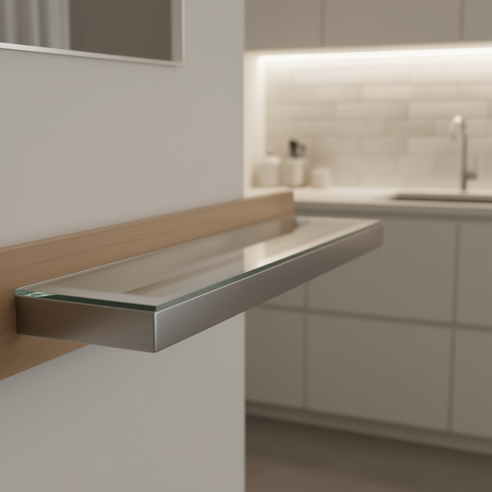 แผงชั้นวางกระจกนิรภัย 31.5x4.7 นิ้ว โปร่งใส รูปทรงสี่เหลี่ยมผืนผ้า ดีไซน์เรียบง่าย สำหรับตกแต่งอาคาร