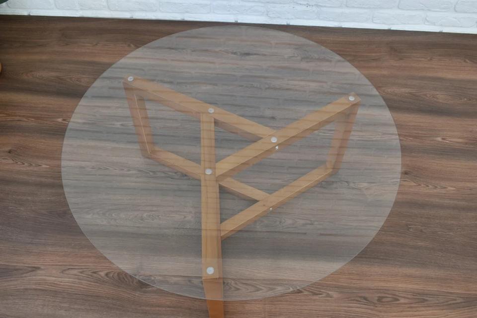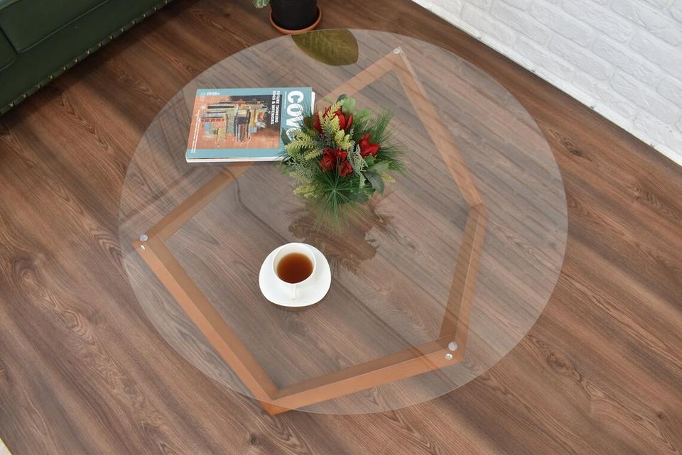 ท็อปโต๊ะกระจกนิรภัยทันสมัยสำหรับห้องนั่งเล่นโต๊ะกาแฟทรงกลมพร้อมฐานสแตนเลสปรับแต่งได้