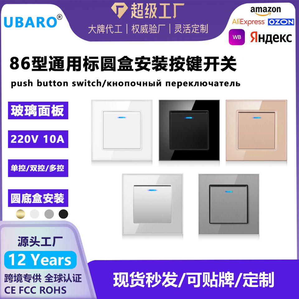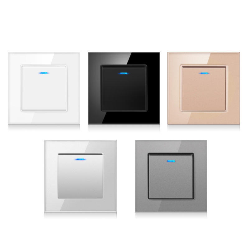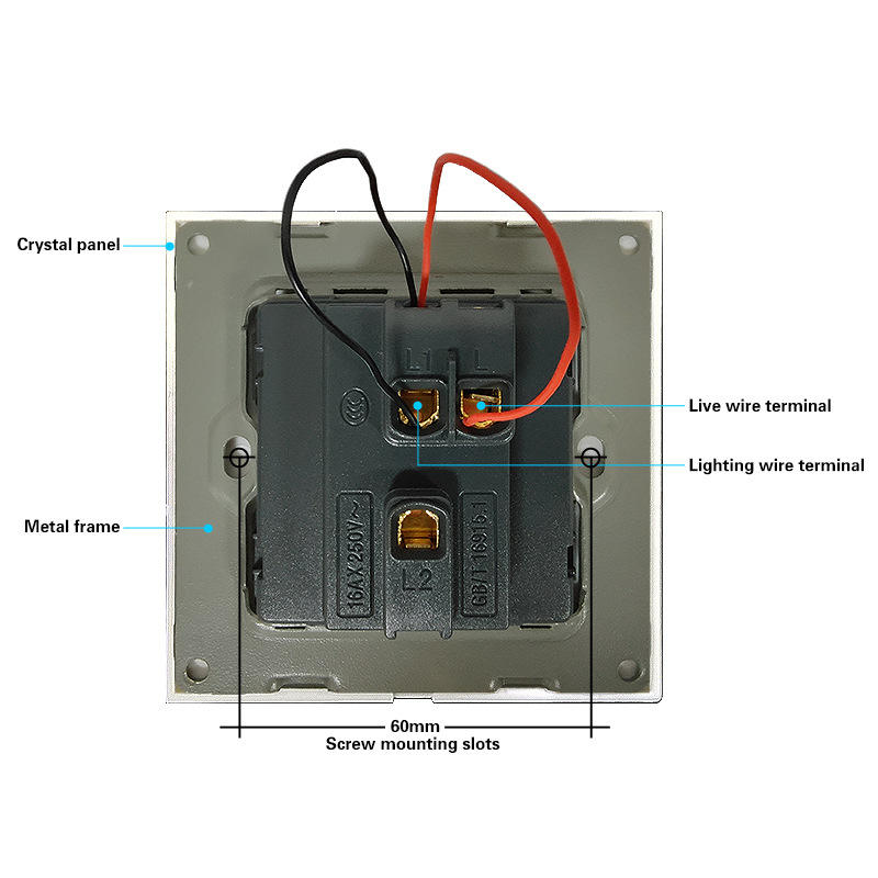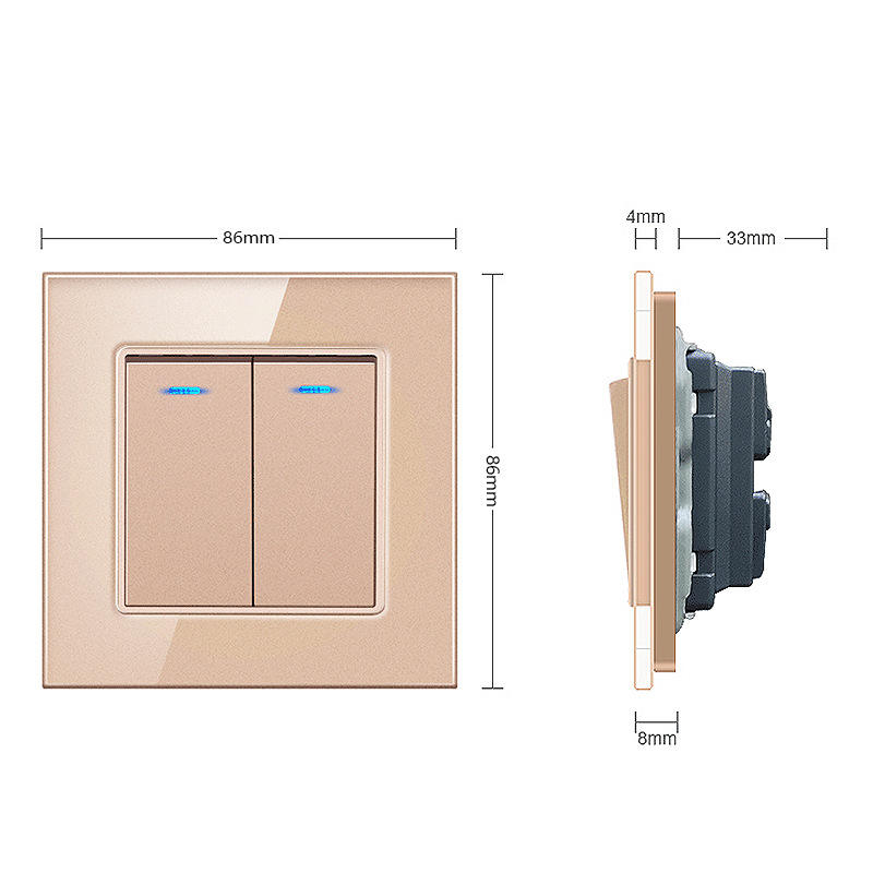 แผงสวิตช์ติดผนังกระจกนิรภัย 86 มม. 2 ช่อง ควบคุมแบบสัมผัส ติดตั้งแบบ Dark Armor