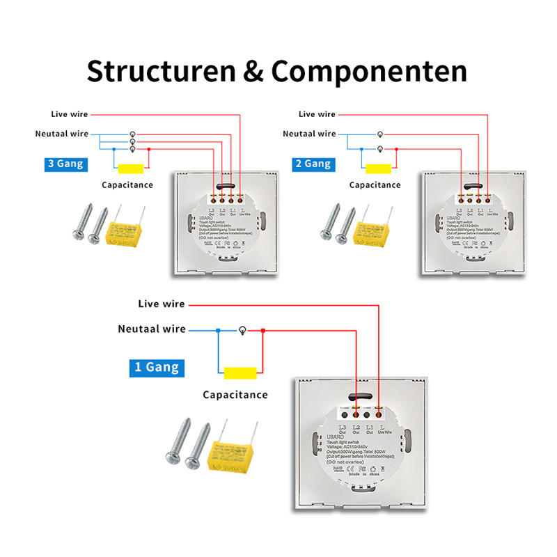 แผงสวิตช์ติดผนังกระจกนิรภัย 86x86 มม. สวิตช์สัมผัสเดี่ยว ป้องกันไฟไหม้ IP44 สวิตช์อัจฉริยะแบบฝัง