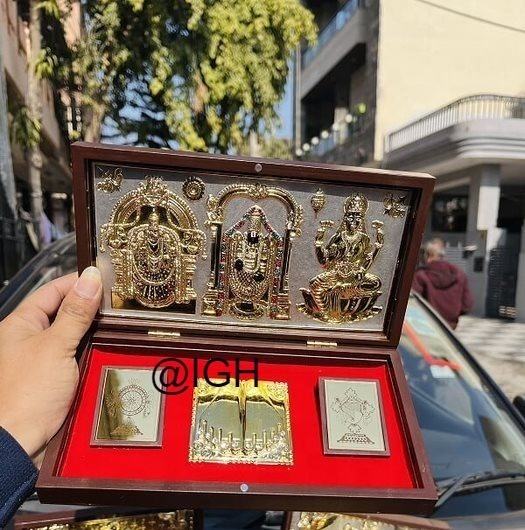 Gold-plated God Idol BALAJI, Padmavati, And Lakshmi Ji Photo Frame