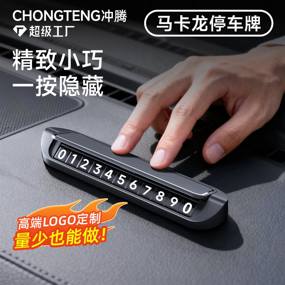 ป้ายจอดรถชั่วคราวแบบแม่เหล็ก ซ่อนได้ ป้ายโลหะสำหรับย้ายตำแหน่งรถ ป้ายโทรศัพท์ สีดำคลาสสิก ซ่อนได้ในคลิกเดียว ปรับแต่งโลโก้ได้