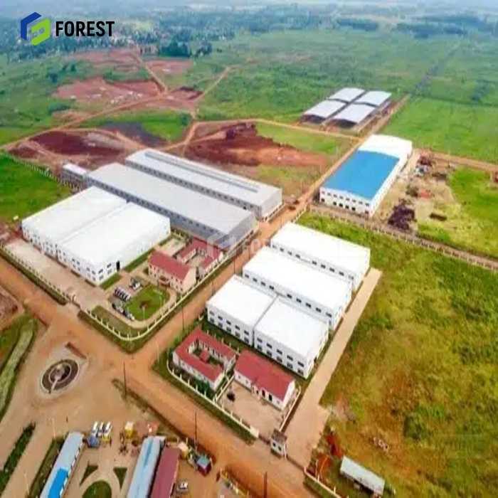 โกดังเหล็กสำเร็จรูปสำหรับงานหนัก พร้อมบริการเชื่อมและตัด ชิ้นส่วนแบบโมดูลสำหรับการจัดส่งที่รวดเร็ว
