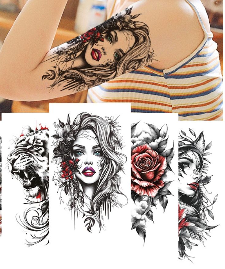 รอยสักชั่วคราวสำหรับผู้ชาย ผู้หญิง ผู้ใหญ่ สีดำ ลายมังกรเหมือนจริง สติ๊กเกอร์ติดแขนครึ่งแขน กันน้ำ ลายชนเผ่า โทเท็ม