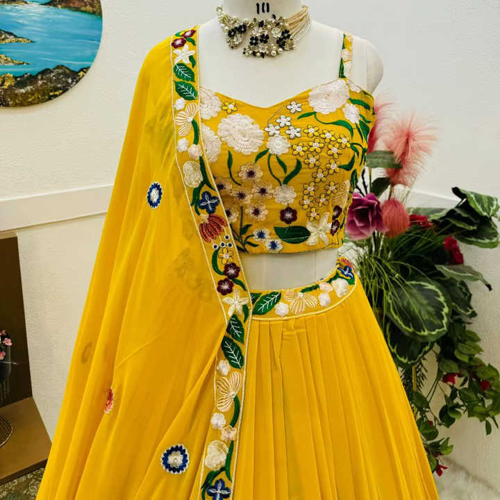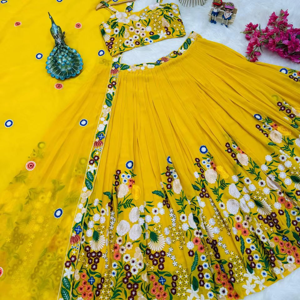 ชุดเลเฮนกาโชลีผ้าจอร์เจียต์ลายปักเลื่อม ดีไซน์ล่าสุดจากเทเนซี สำหรับผู้หญิง