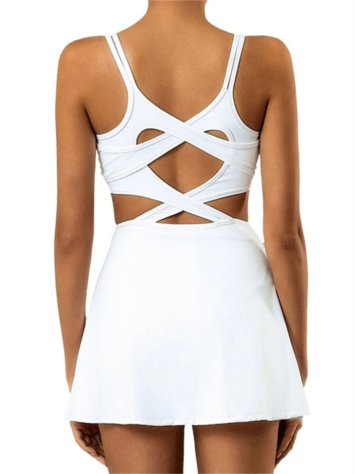 ชุดเทนนิสผู้หญิง แขนกุด ทรงพอดีตัว ยกกระชับรูปร่าง สำหรับออกกำลังกาย วิ่ง ฟิตเนส ดีไซน์เว้าหลัง ระบายอากาศได้ดี ไซส์ใหญ่ สีพื้น สำหรับแบดมินตัน