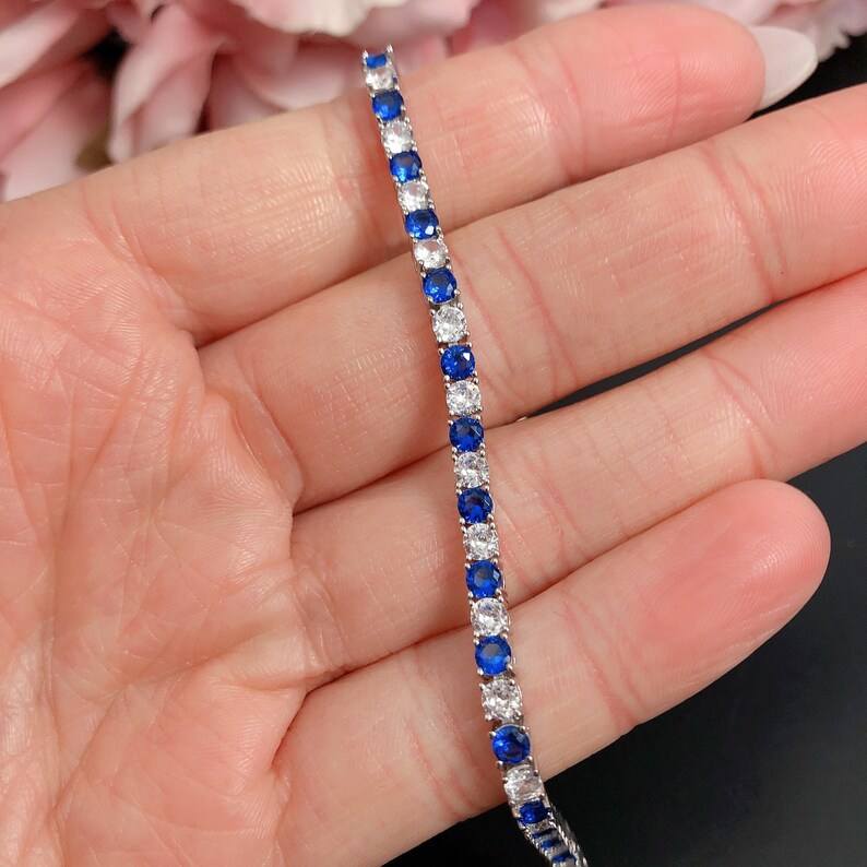 สร้อยข้อมือเงินประดับพลอยเทนนิส แซฟไฟร์ พลอยประจำเดือนเกิดเดือนกันยายน ของขวัญวันเกิด วันครบรอบ วันแต่งงาน สำหรับผู้หญิง