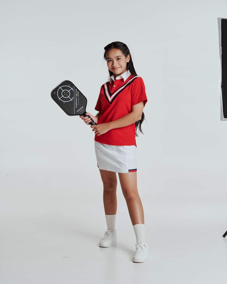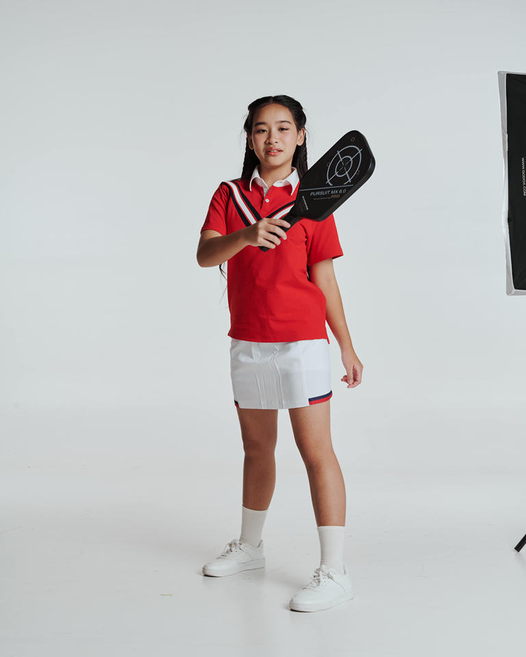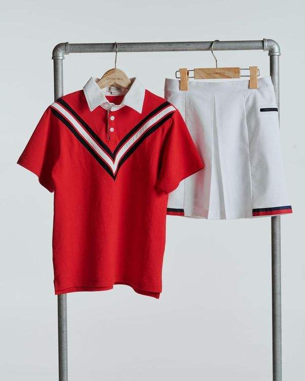 ออกแบบ:เสื้อเชิ้ตแขนสั้นและกระโปรงสีขาว