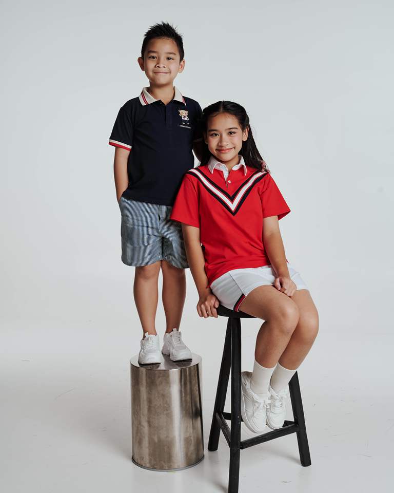 เสื้อ: ผ้าฝ้าย100%, กระโปรง: Kakiชนิดของเนื้อผ้า
